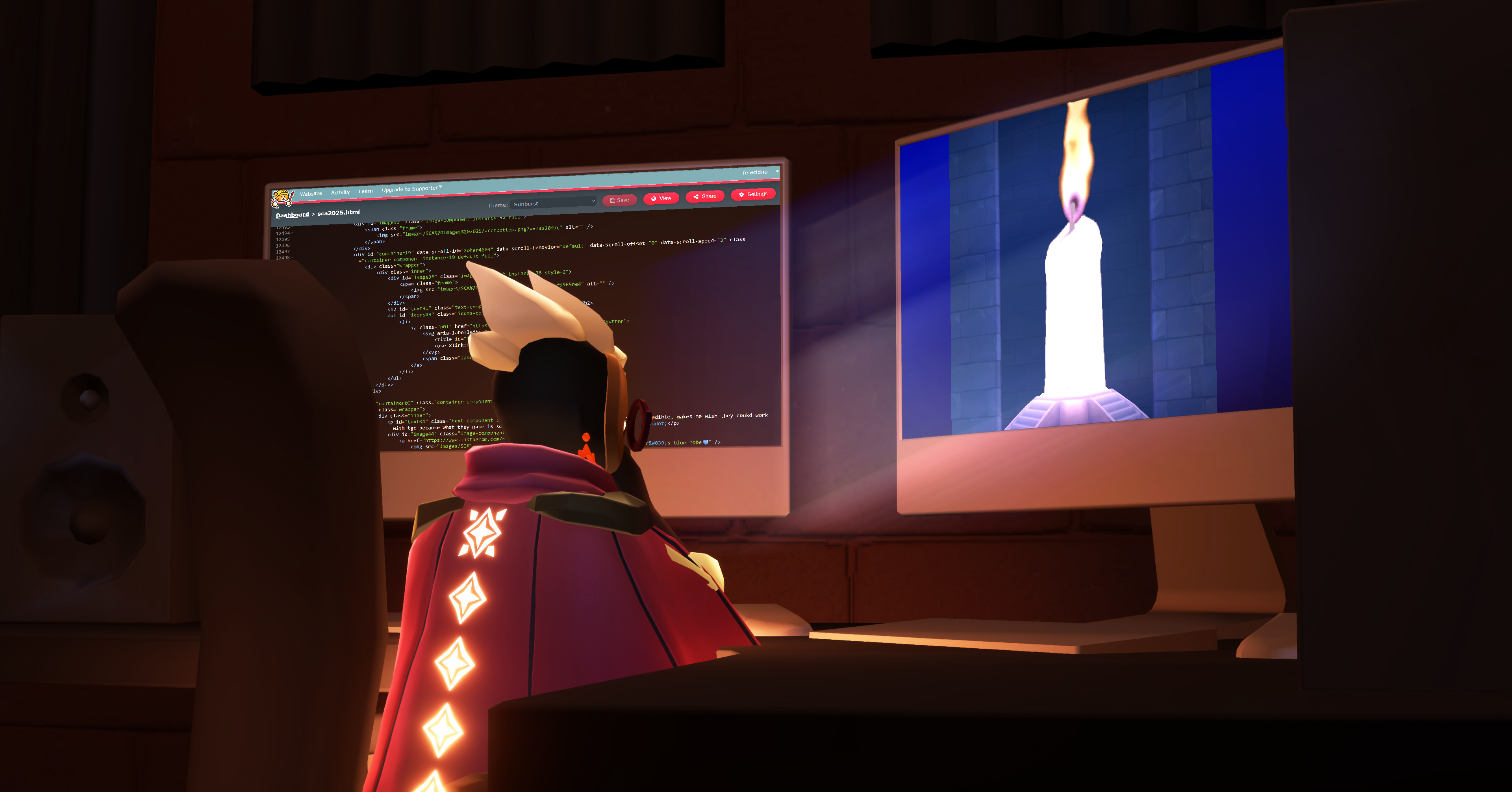 It's not something I like to bring up a lot, but some of you may be aware I have some health conditions that tossed a lot of planned projects into the air last year. Normally I begin work on SCA in December while submissions are still ongoing, building the structure and making all the assets so it’s all ready for January when I input everything from the form. But this last December I had a kind of scary development with one of those conditions that took a lot out of me, and it threw a huge wrench in my grand end-of-the-year plans. Part of me wanted to push through it and rush to get everything out by January, but I knew I wouldn't have been happy with the result if I did. This project is a vessel of love for creativity, from you all and from me, and just as you submitted your sincerest and most heartfelt thoughts I, too, wanted my contribution to feel genuine rather than an obligation.